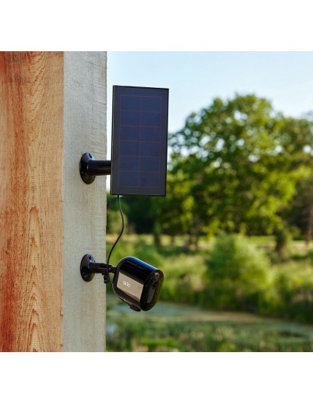 Arlo solarni punjač drži bateriju napunjenom izravnom sunčevom svjetlošću. Njegov dizajn otporan na vremenske uvjete i podesivi nosač čine instalaciju jednostavnom bilo gdje.
